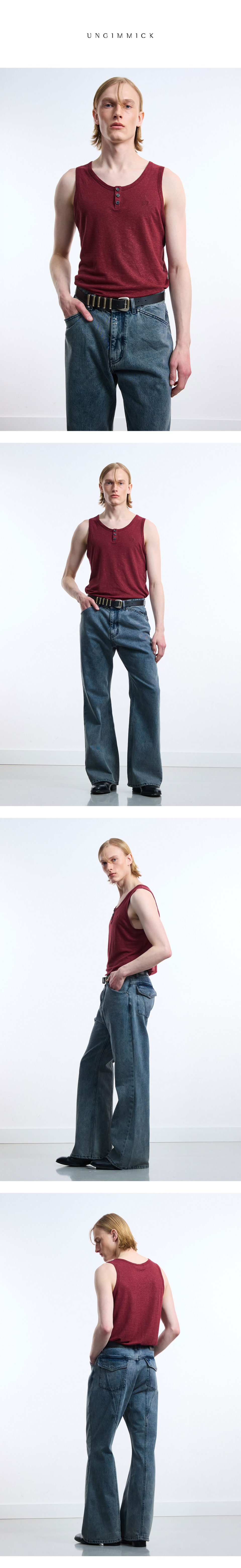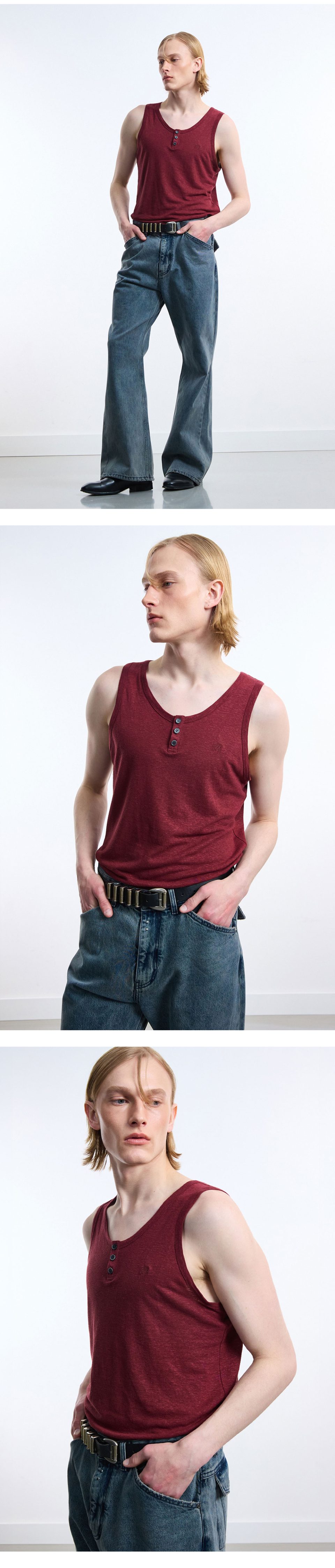LINEN BLEND HENLEY TANK TOP (BURGUNDY)
