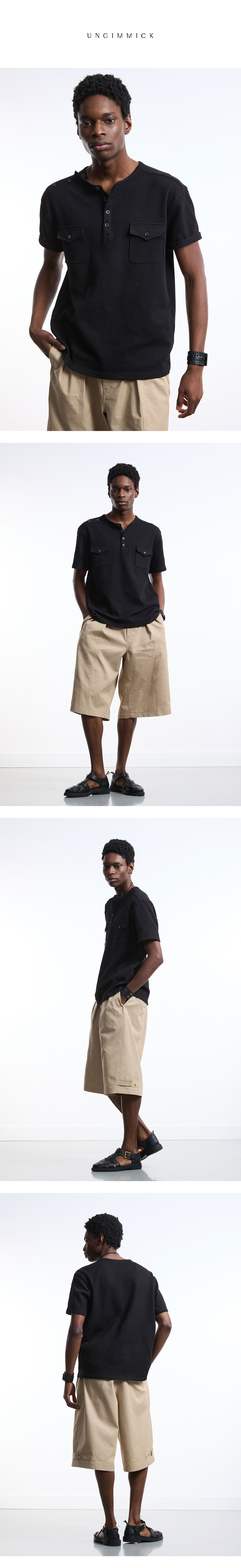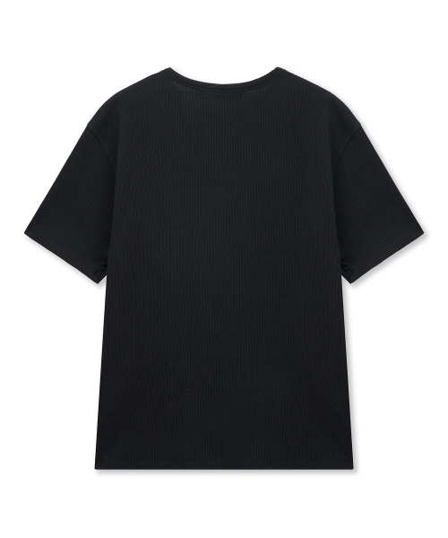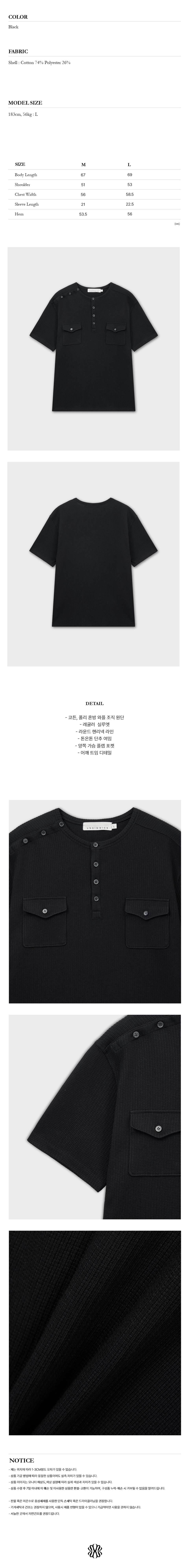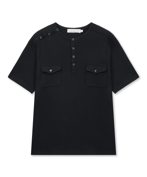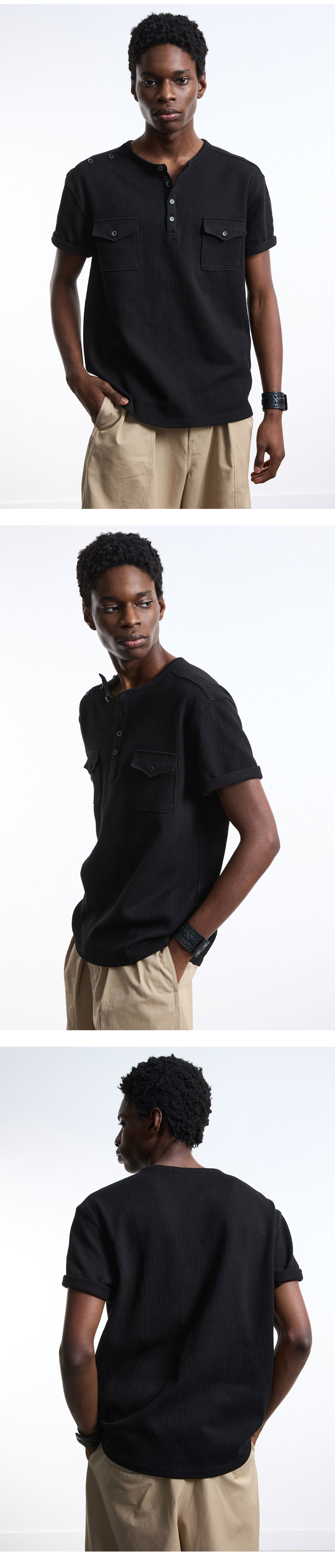 SHORT-SLEEVED WAFFLE HENLEY T-SHIRT (BLACK)
