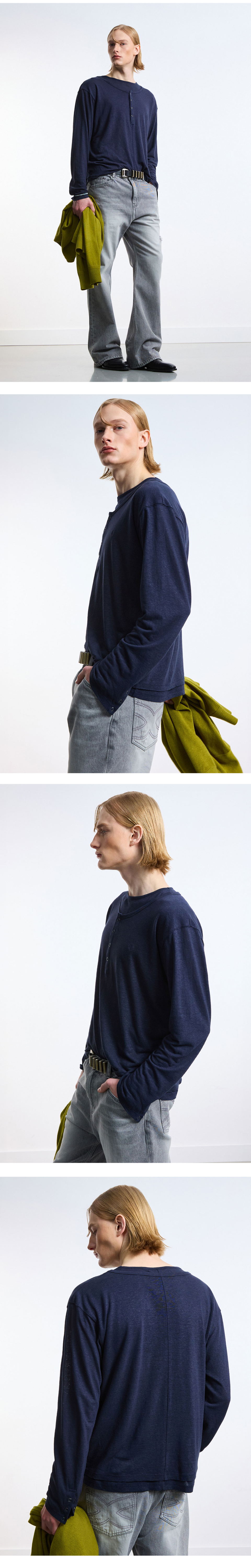 SHORT-SLEEVED WAFFLE HENLEY T-SHIRT (BLACK)