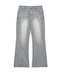 DISTRESSED FLAERD DENIM PANTS (LIGHT GRAY)
