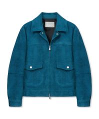 COBALT SUEDE TRUCKER JACKET (BLUE / GOATSKIN)