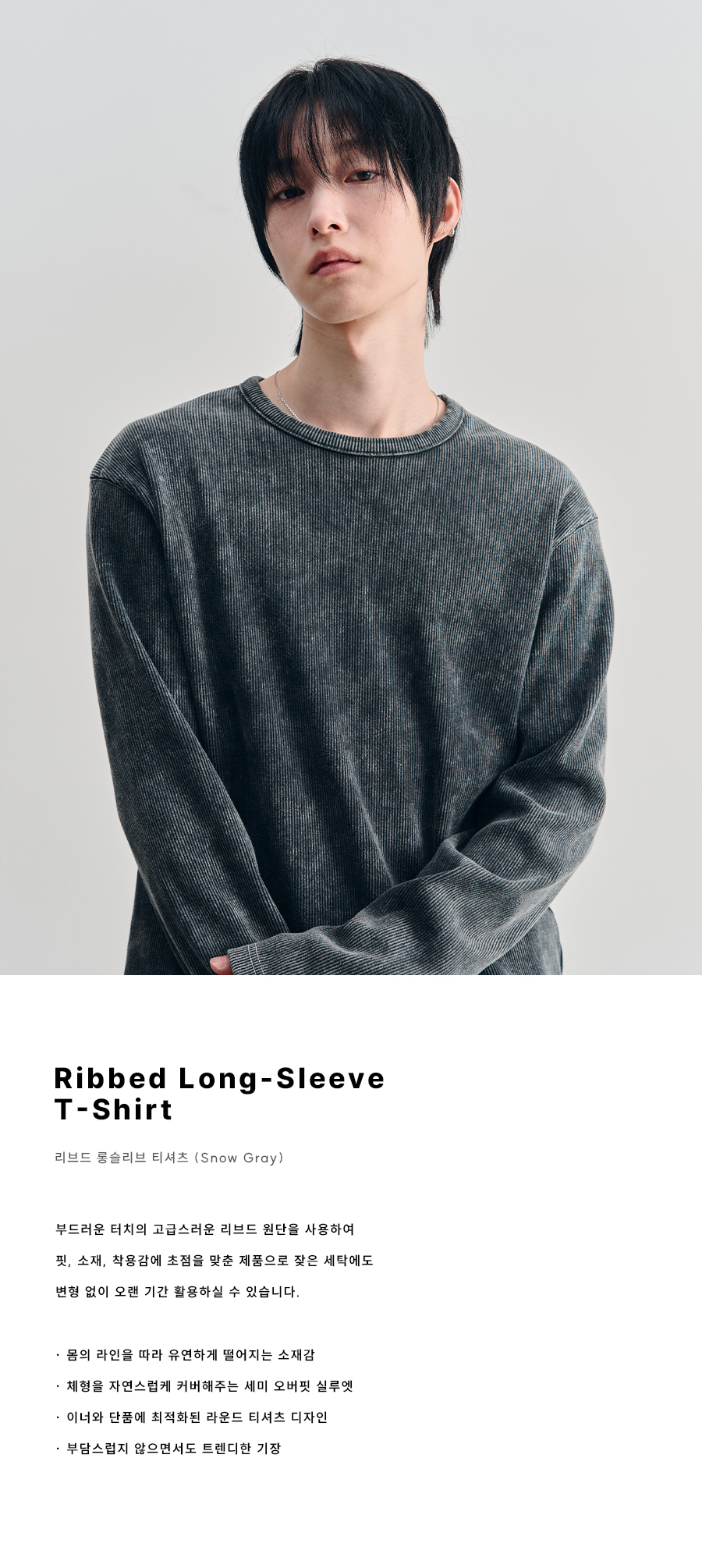 리브드 롱슬리브 티셔츠 [SNOW GRAY]