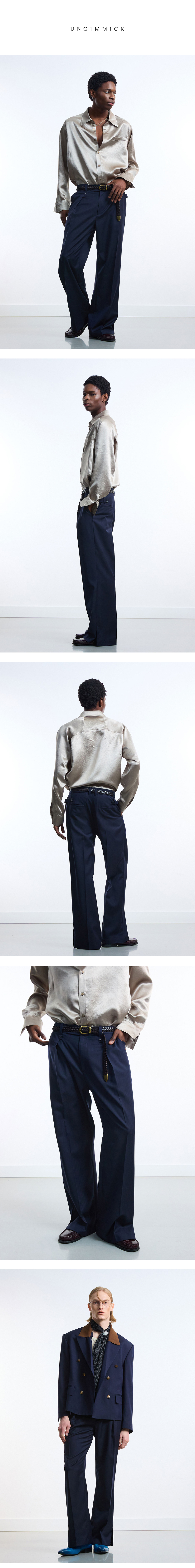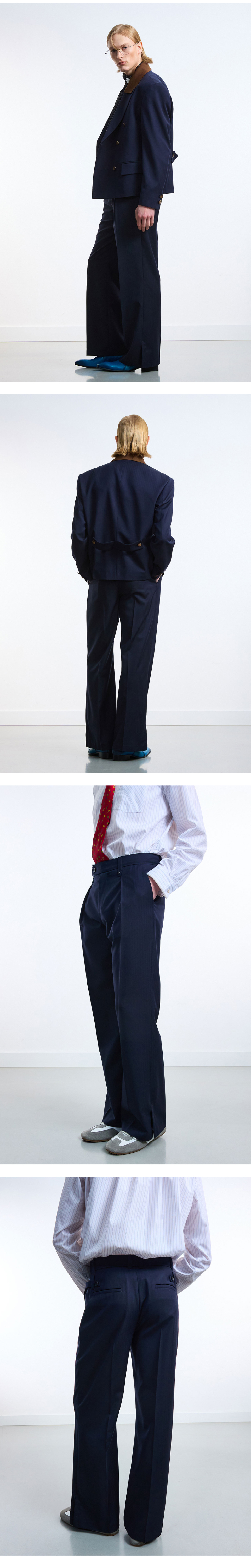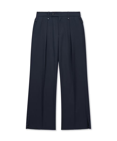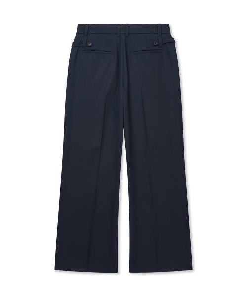 HERRINGBONE SEMI FLARED PANTS (NAVY)