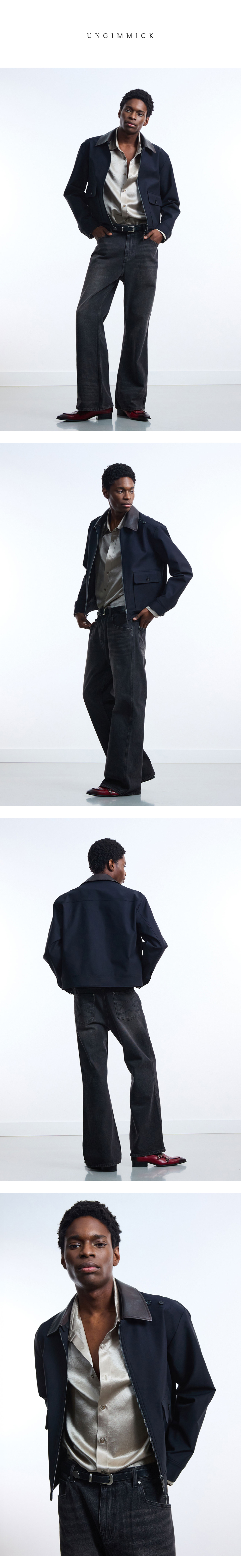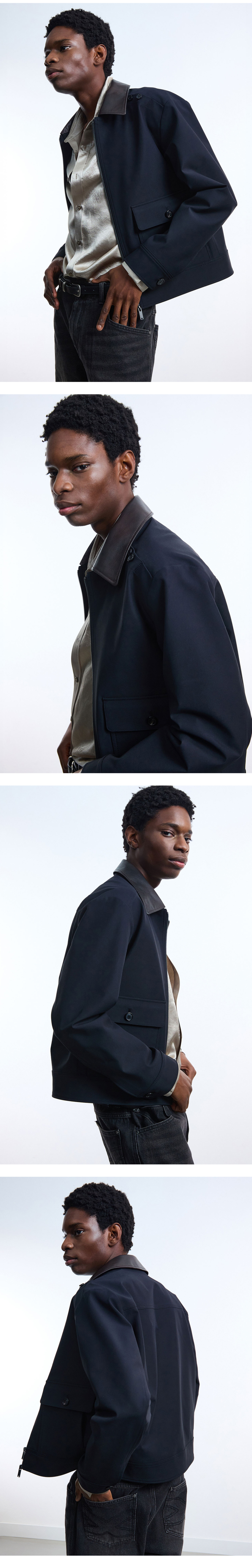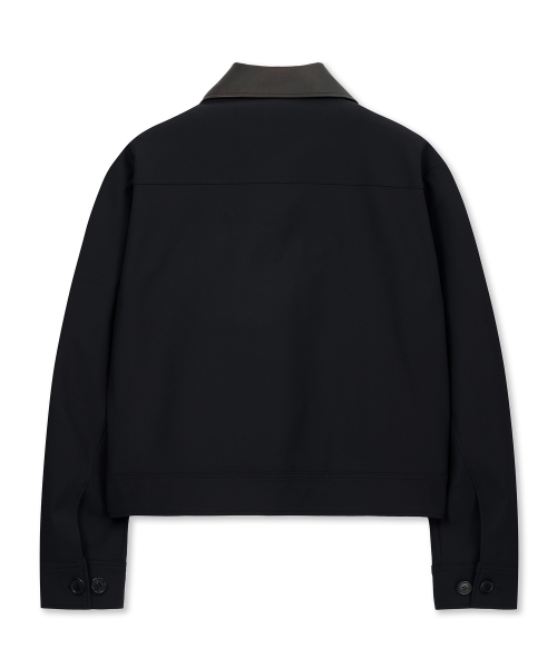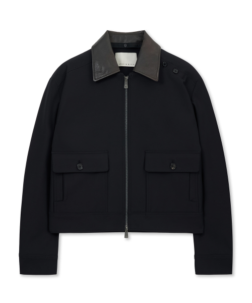 LEATHER COLLAR NYLON JACKET (BLACK)