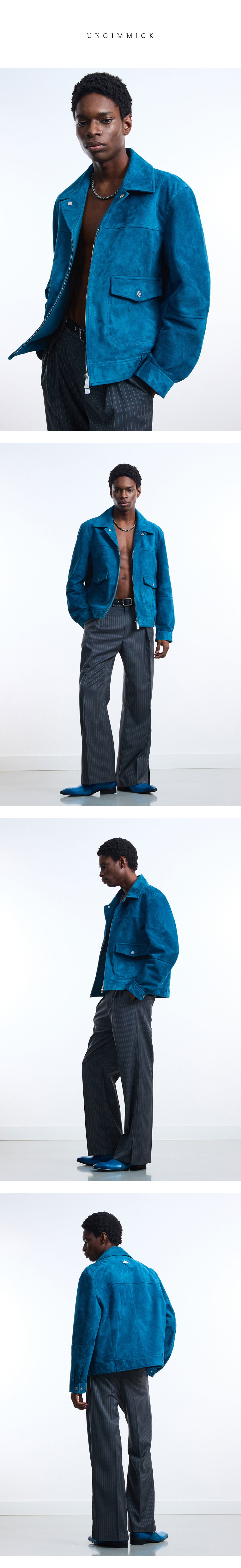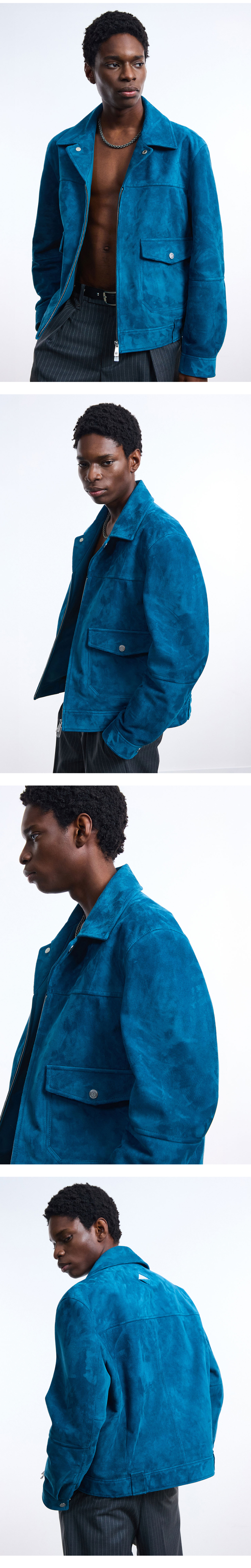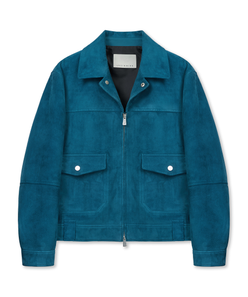 COBALT SUEDE TRUCKER JACKET (BLUE / GOATSKIN)