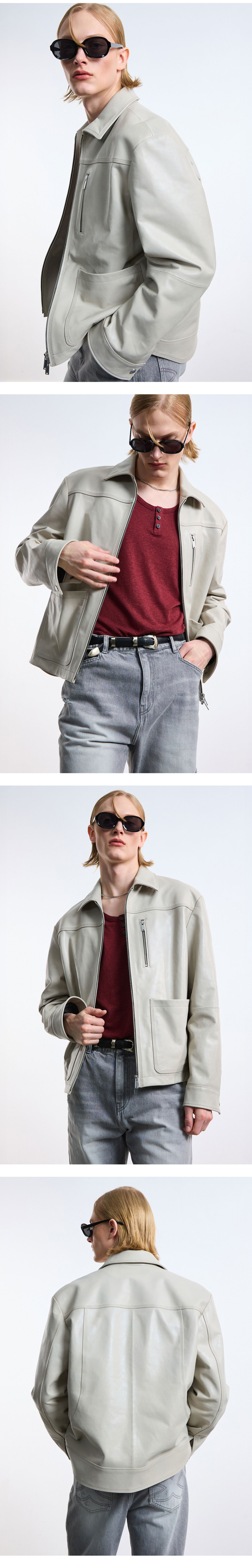 OIL-WAXED NAPPA LEATHER JACKET (OFF-WHITE / LAMBSKIN)