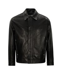 ZIP-PIPED NAPPA LEATHER TRUCKER JACKET (BLACK / VEGETABLE LABMSKIN)