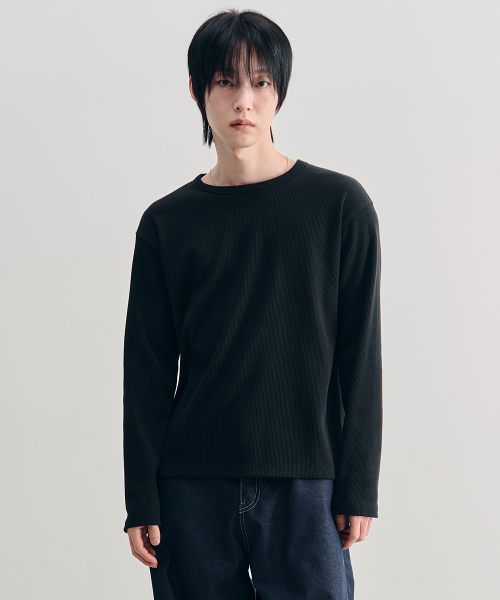 리브드 롱슬리브 크롭 티셔츠 [BLACK]