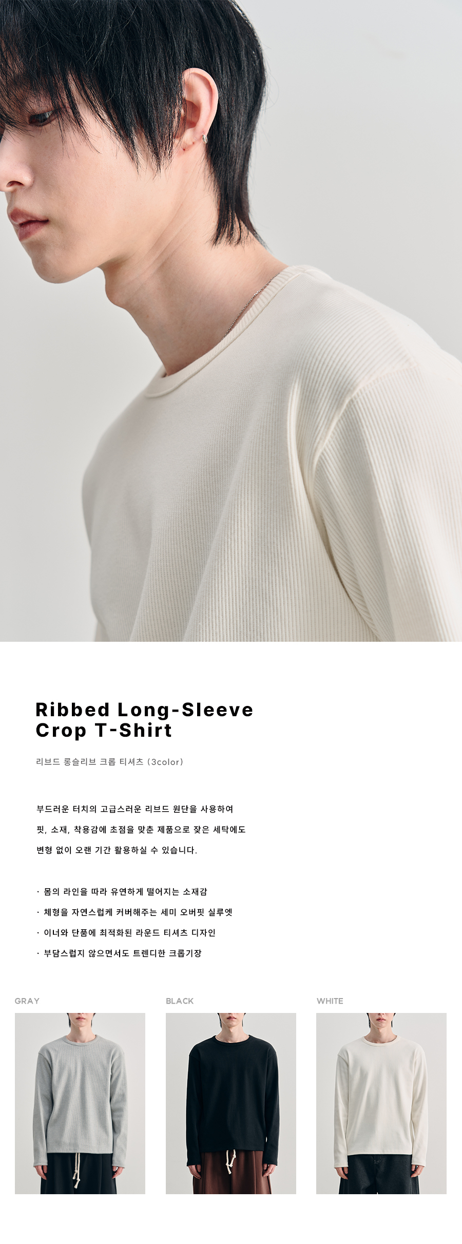 리브드 롱슬리브 크롭 티셔츠 [WHITE]