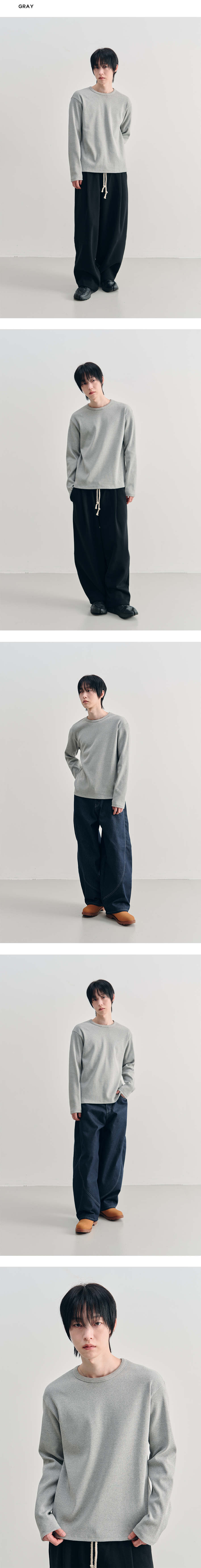리브드 롱슬리브 크롭 티셔츠 [GRAY]