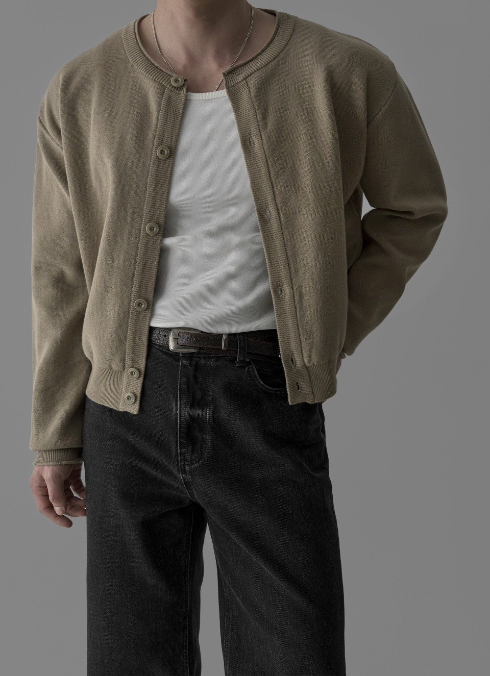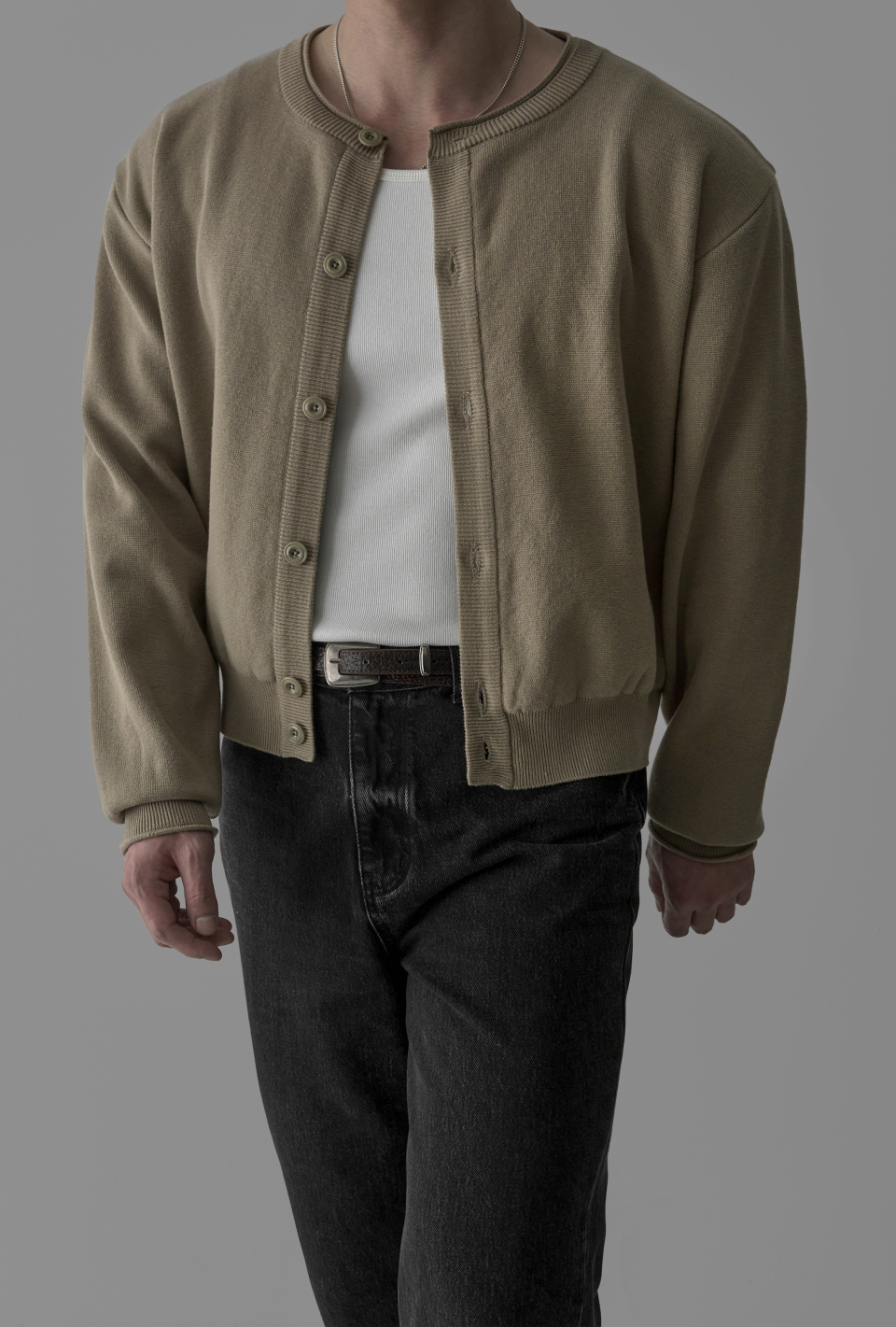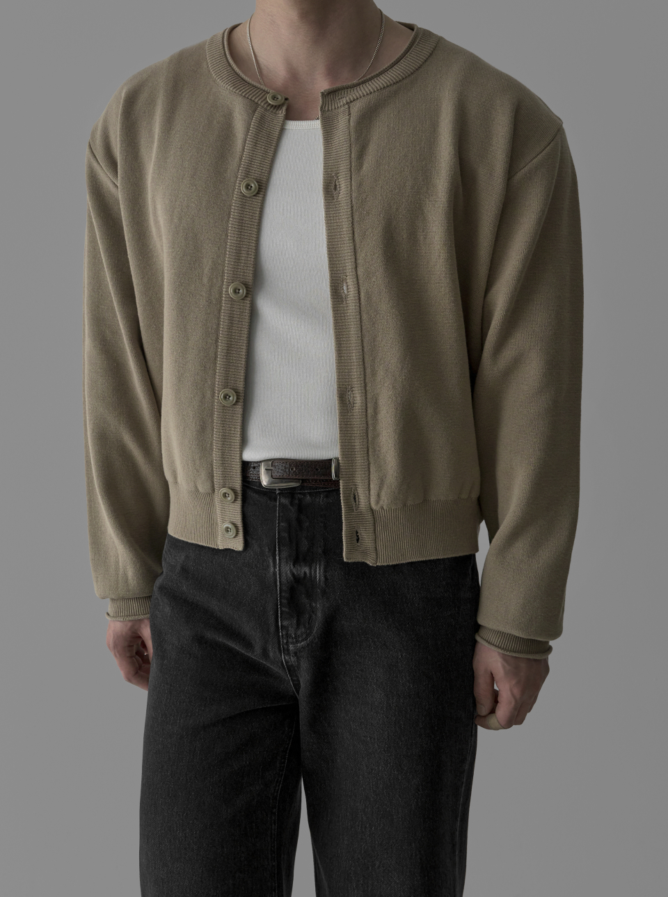 - 크롭한 기장감과 라운드 넥라인으로 세련된 무드 연출