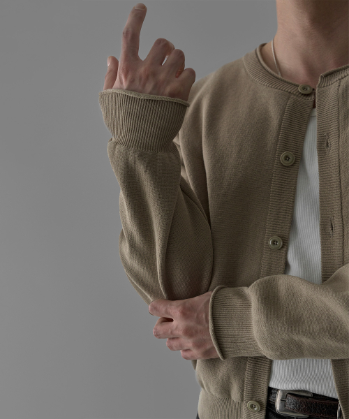 - 코튼, 아크릴 혼방 원사로 편직된 가디건