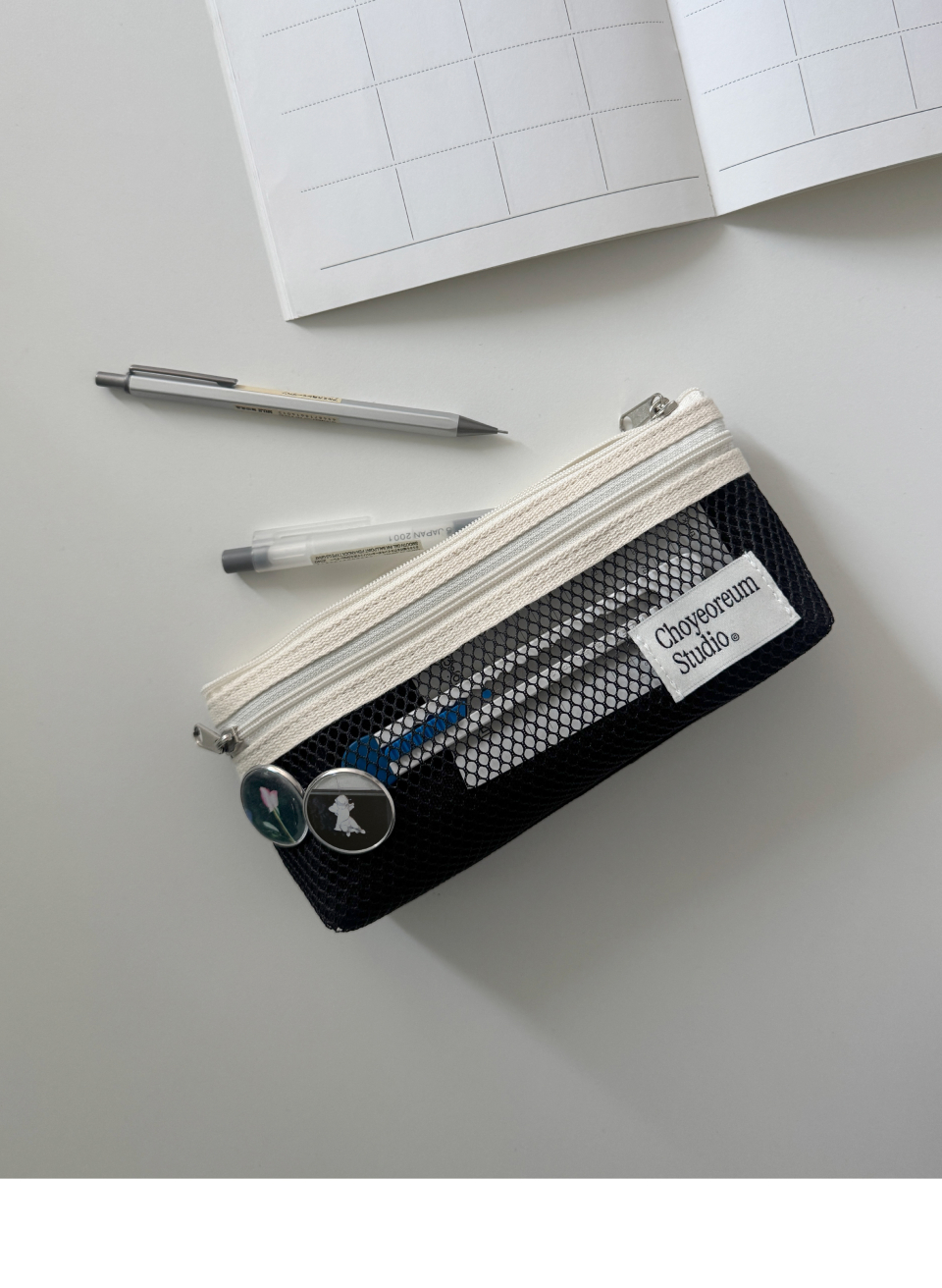 스탠드 메쉬 펜슬파우치