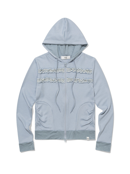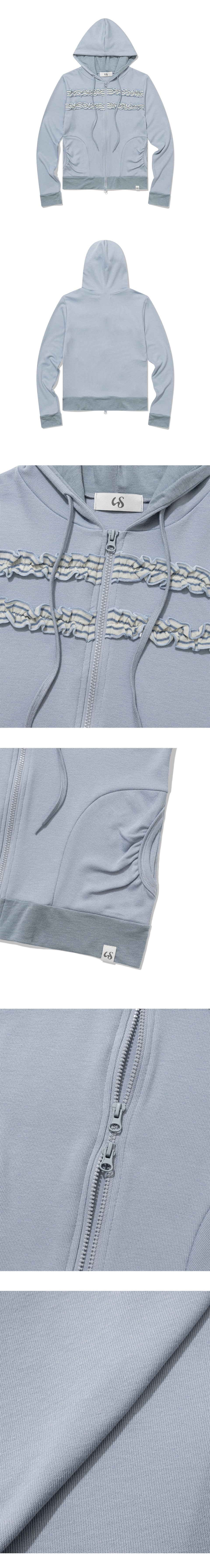 스타 패턴 원단과 배색 주머니 디테일이 포인트인 후드 집업입니다.