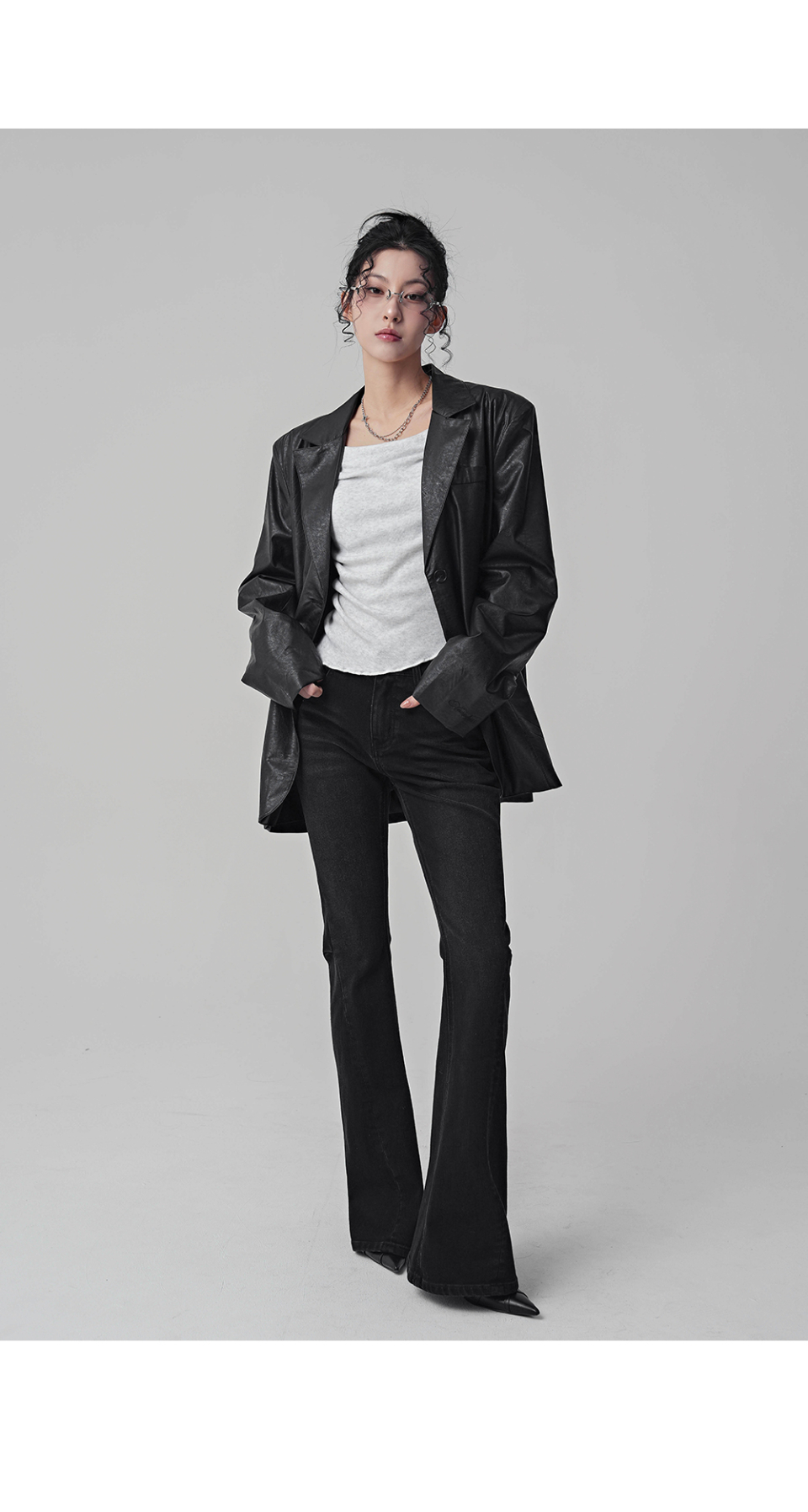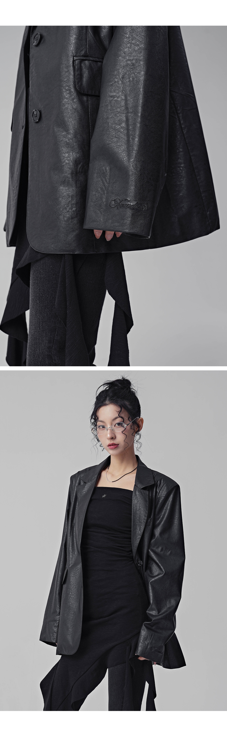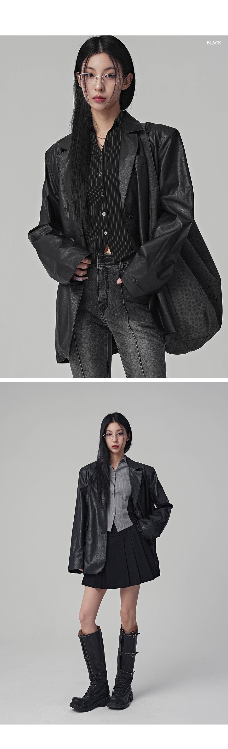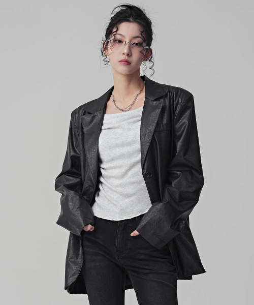램스킨 베지터블 오버핏 자켓 [블랙]