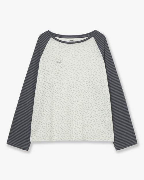 COZY FLOWER RAGLAN LONG SLEEVE [CHARCOAL]