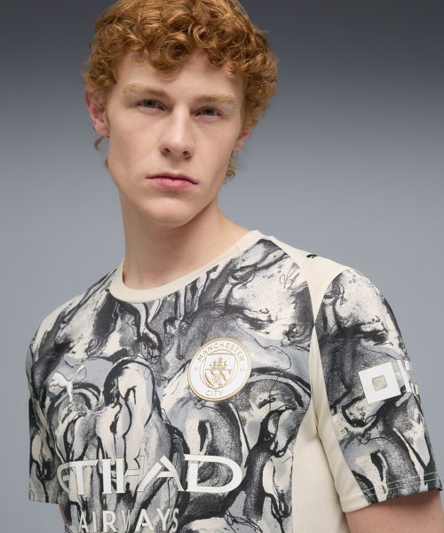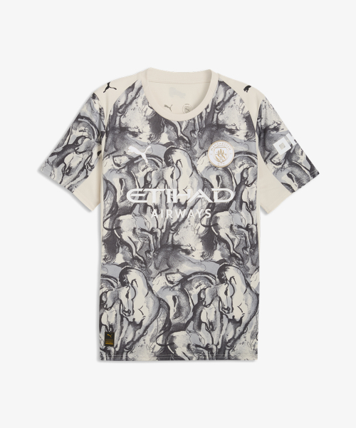 이번에 출시되는 한정판 맨시티 '말의 해' 저지는 직접 손으로 그린 '불의 말(Fire Horse)' 아트워크가 특징입니다. 이 특별한 디자인은 경기장과 거리 그 어디에서든 생동감 넘치는 움직임과 구단의 역사, 그리고 에너지를 불어넣어 줍니다.