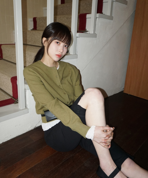 (woman) 에센셜 무드 크롭 라운드 가디건_Olive
