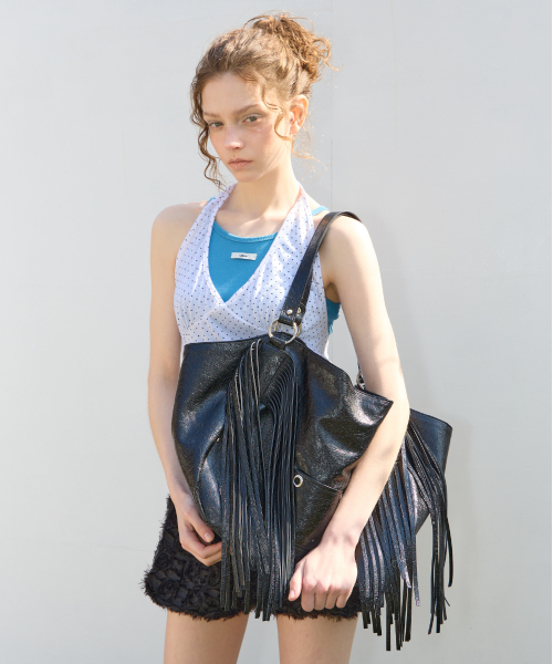 SUEDE BUCKLE REVERSIBLE SHOULDER BAG_BLACK