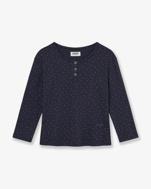 FLOWER HENLEY NECK TEE [NAVY]