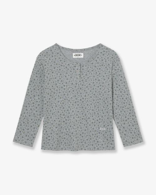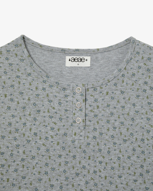FLOWER HENLEY NECK TEE [MELANGE GREY]