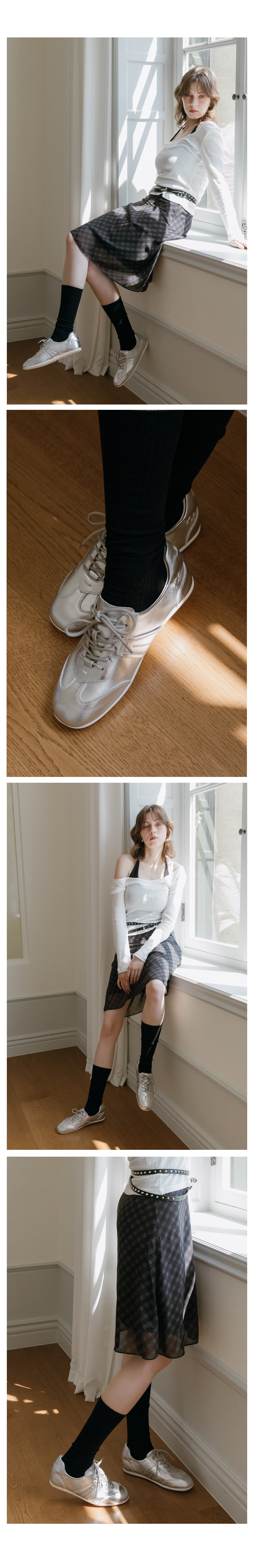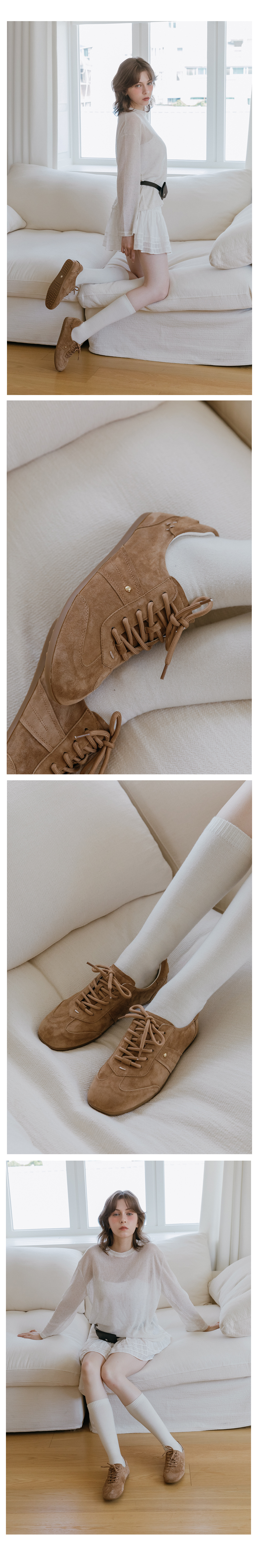 양가죽 드뮤어 레이스업 플랫 스니커즈 58101