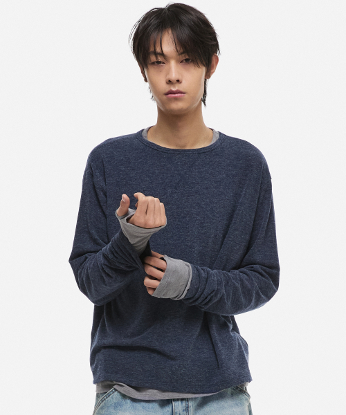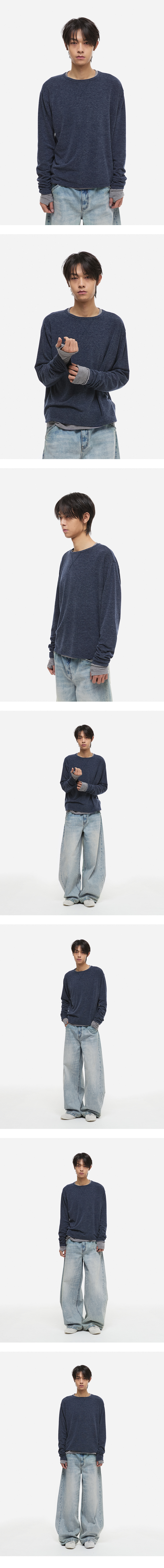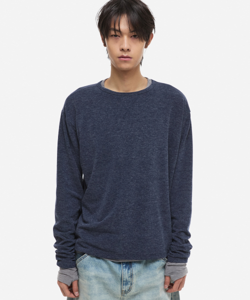 [온플릭xDNSR] 레이어드 보트넥 롱슬리브 네이비