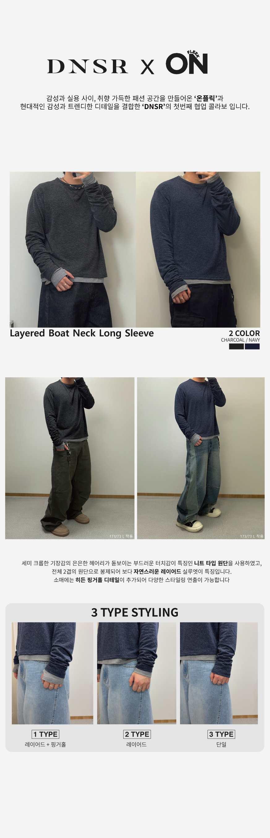 [온플릭xDNSR] 레이어드 보트넥 롱슬리브 차콜