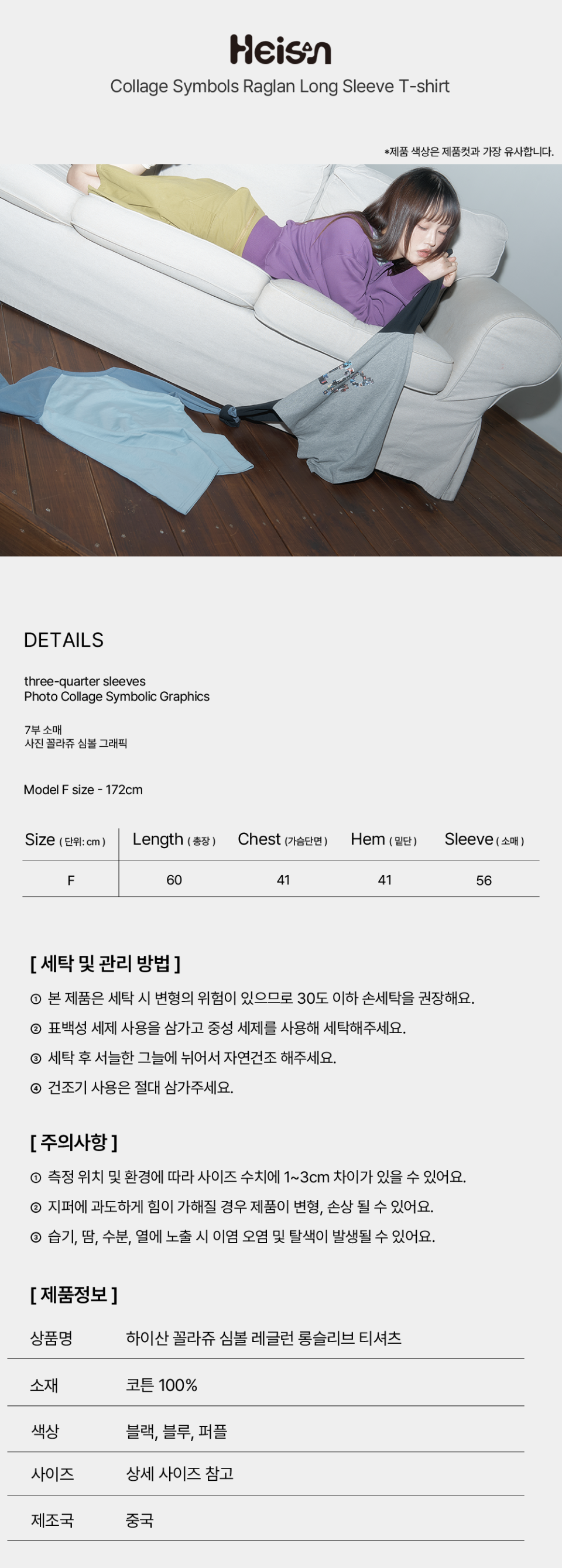 꼴라쥬 심볼 레글런 롱슬리브 티셔츠 블루