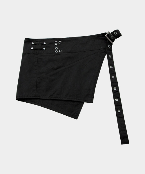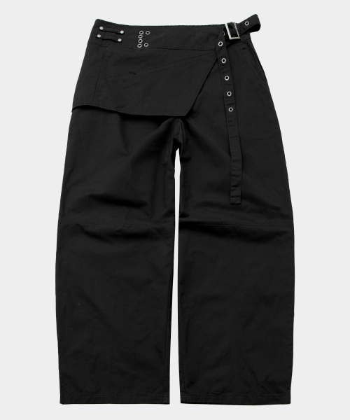 아일렛 벨티드 랩 레이어드 코튼 와이드 투피스 팬츠 세트 [블랙]