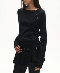 사선 인시전 아일렛 포인트 링스냅 롱슬리브 긴팔 티셔츠_3COLOR
