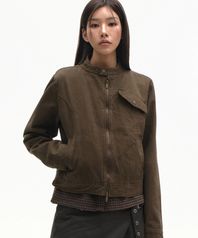하이넥 스탠다드 스트랩 비조 포인트 블루종 집업 자켓 [블랙]