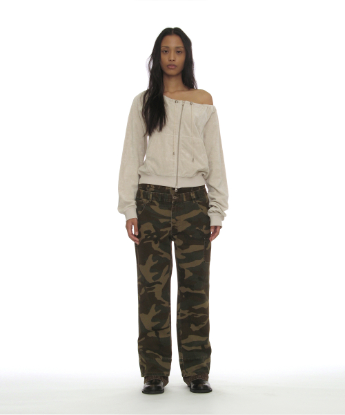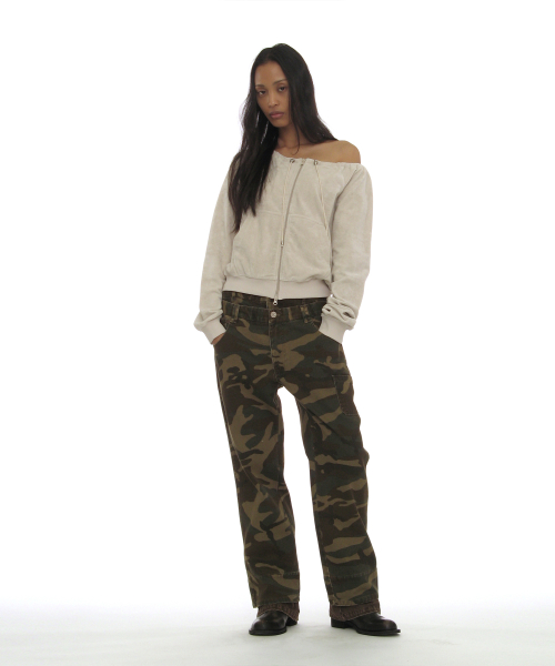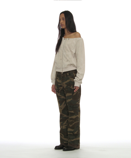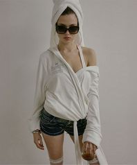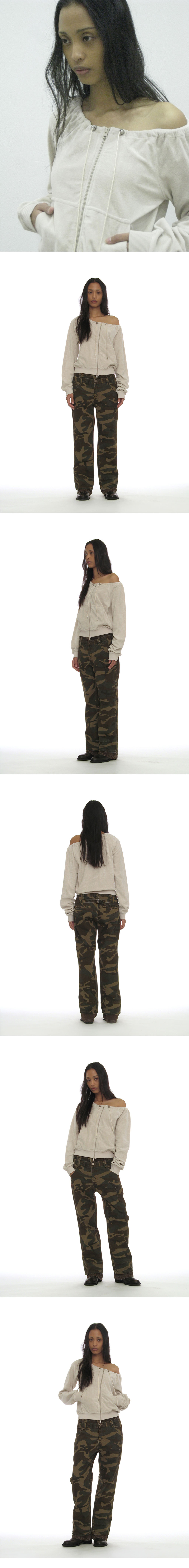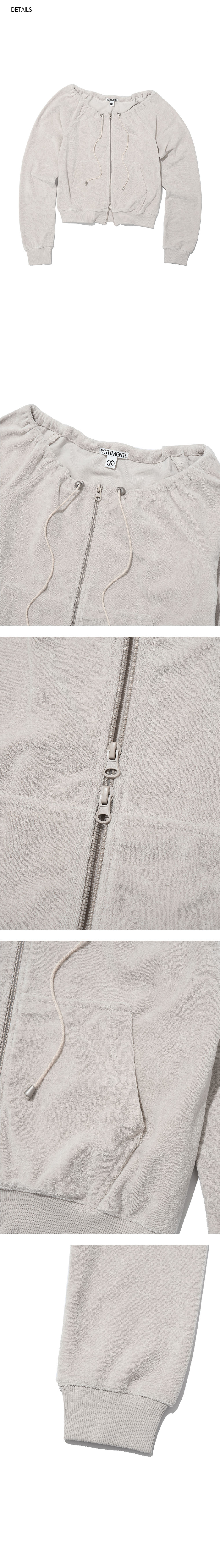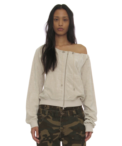 테리 드로스트링 오프숄더 집업 탑_아이보리
