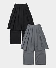 플레어 플리츠 레이어드 미디 스커트 와이드 팬츠 셋업_2COLOR