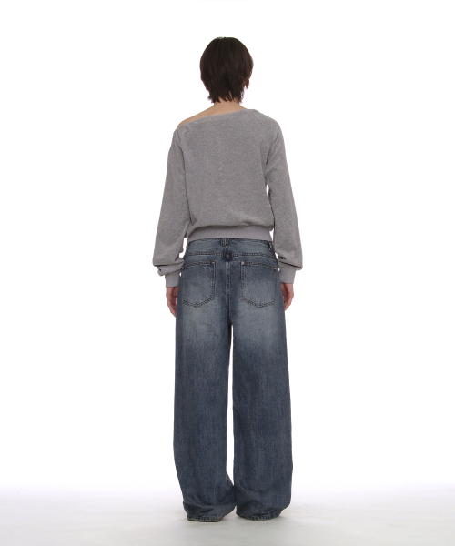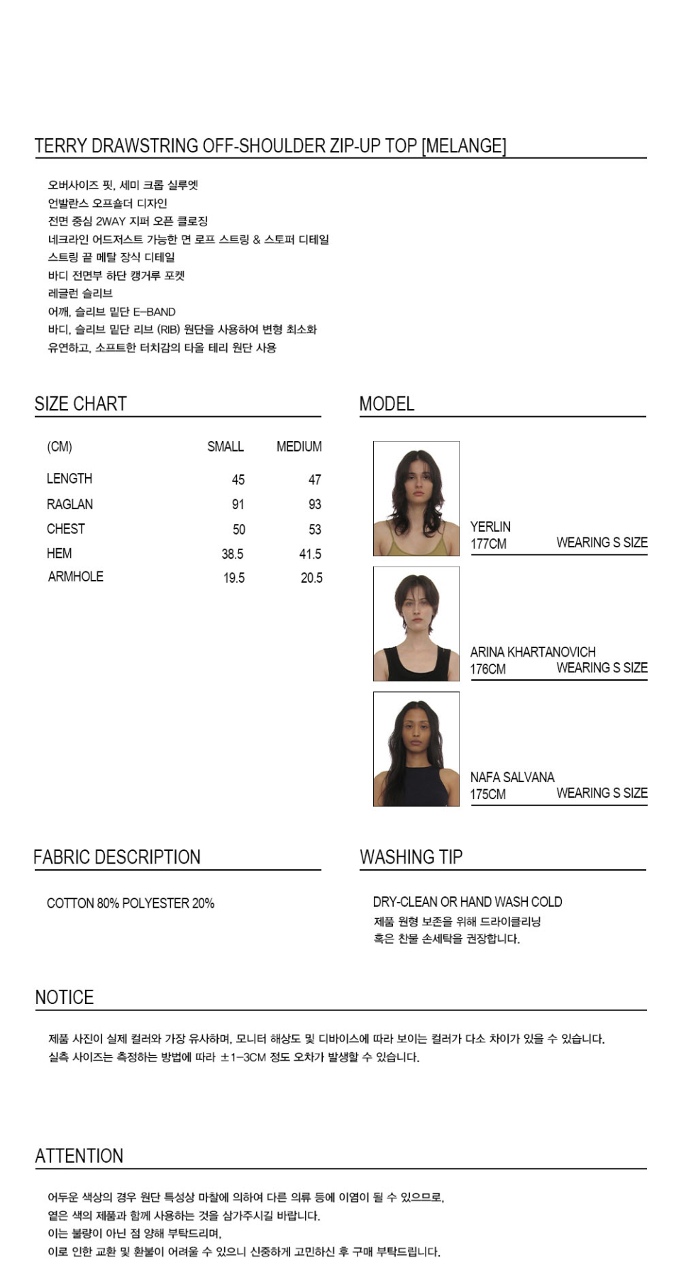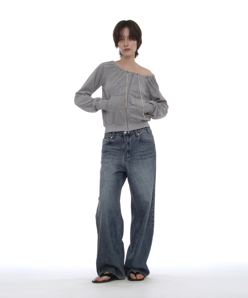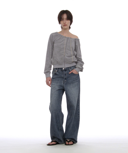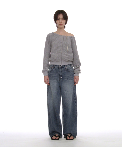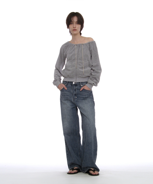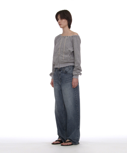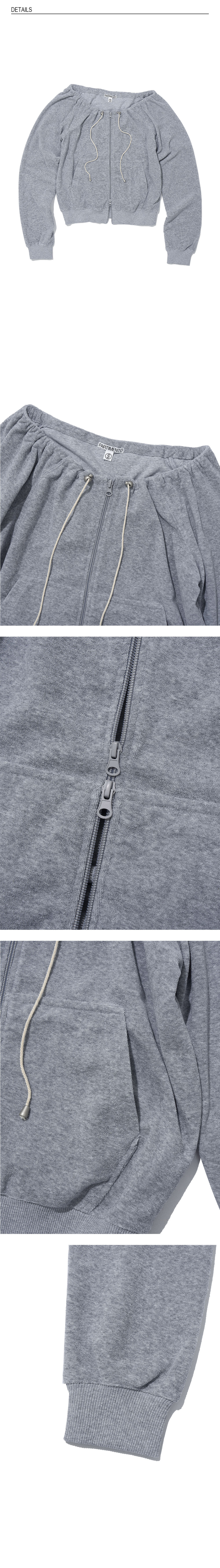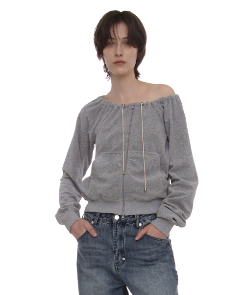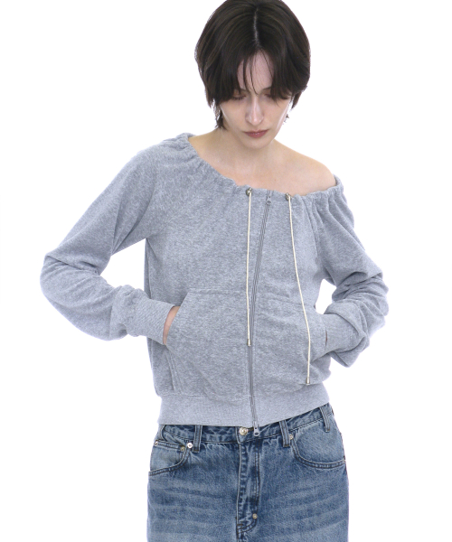 테리 드로스트링 오프숄더 집업 탑_멜란지