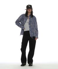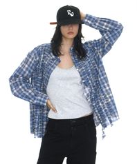 컷오프 프릴 트림 셔츠_블루 체크