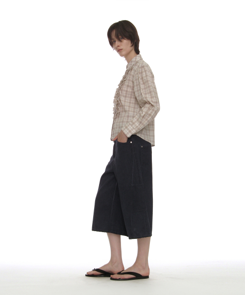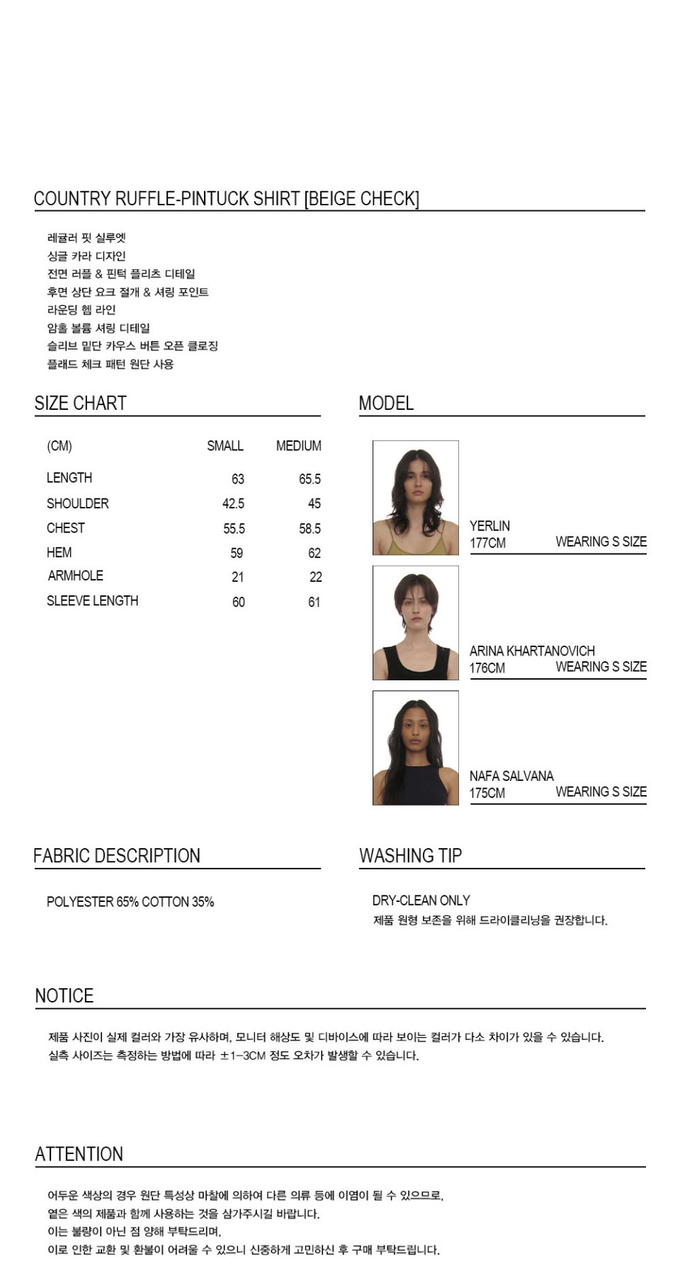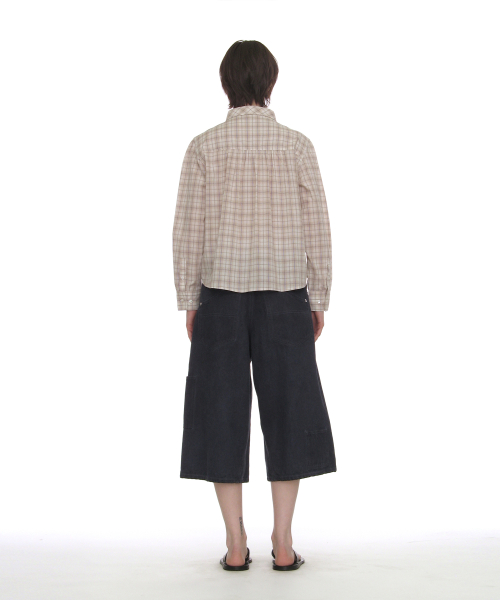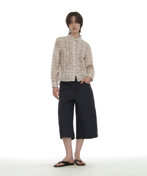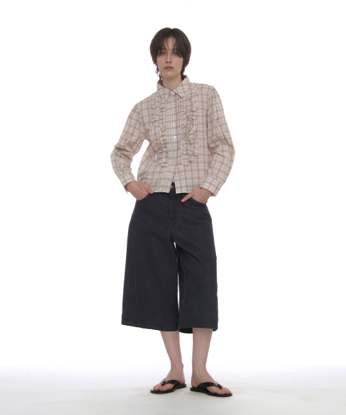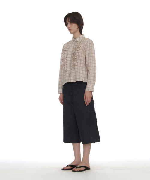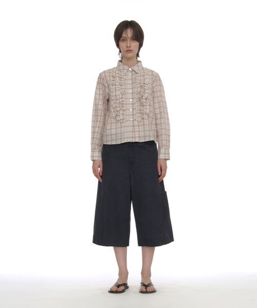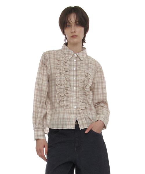 컨트리 러플 핀턱 셔츠_베이지 체크