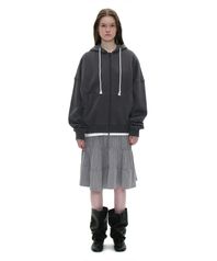 PWC 저지 셔링 티어드 미디 스커트_멜란지