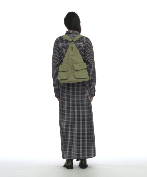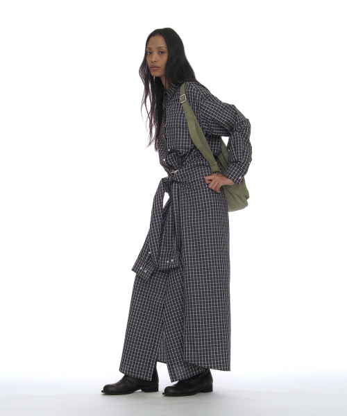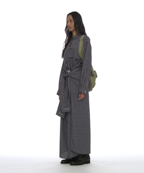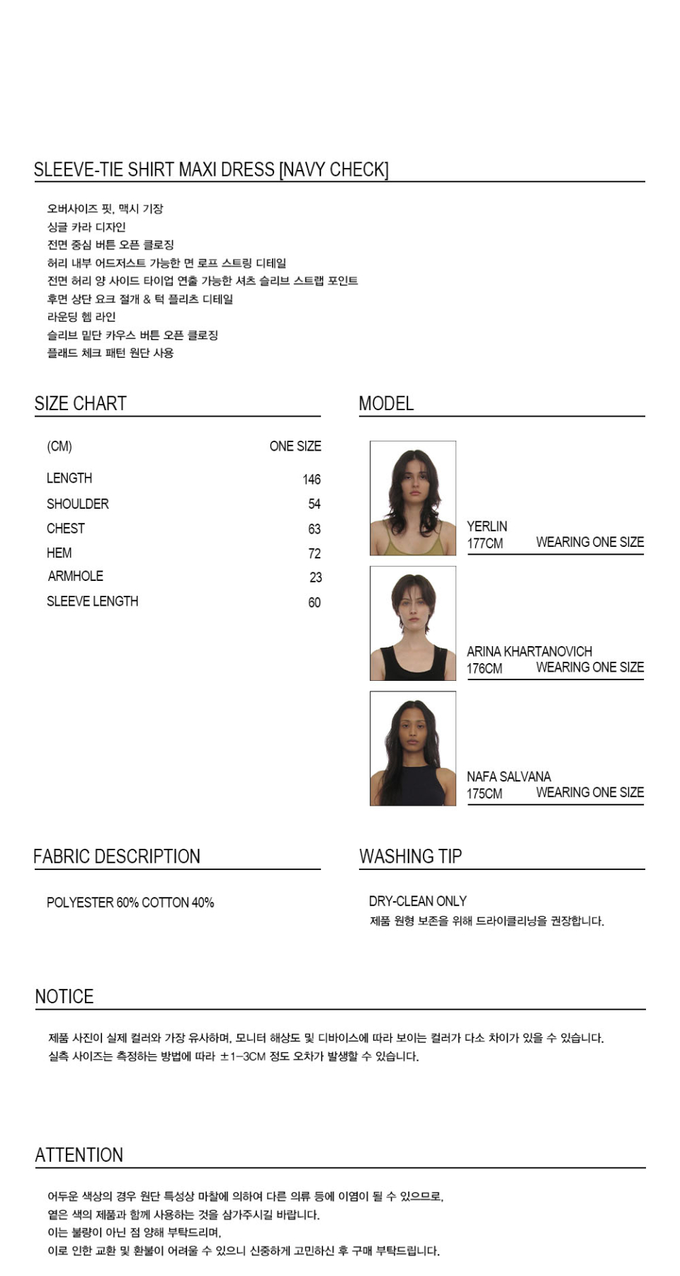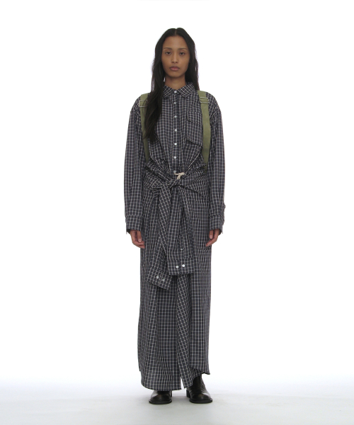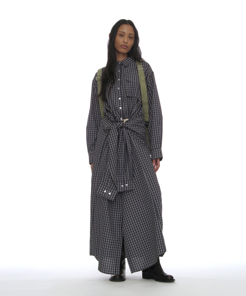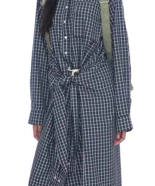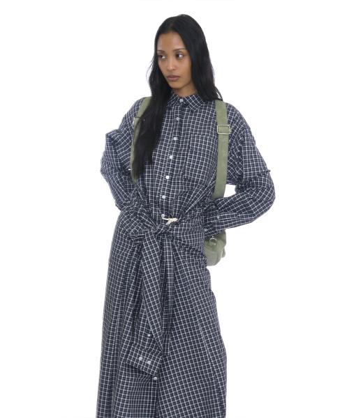 슬리브-타이 셔츠 맥시 드레스_네이비 체크
