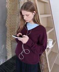 [여울 PICK] All-Day Cotton V-neck Knit - Plum