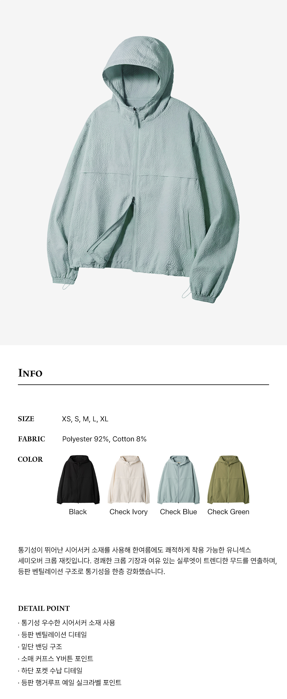 시어서커 체크 윈드브레이커_블루