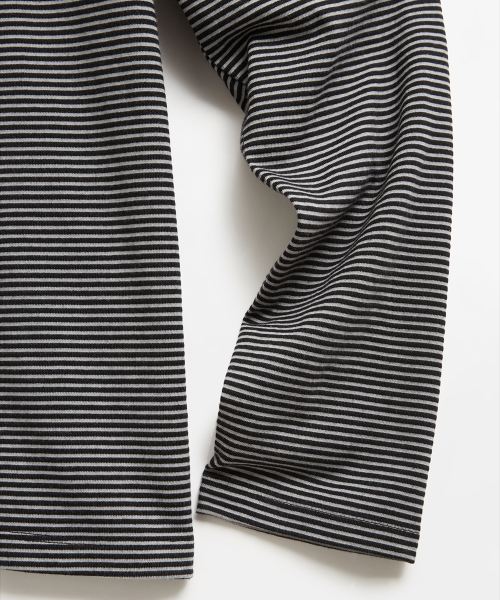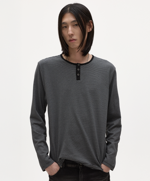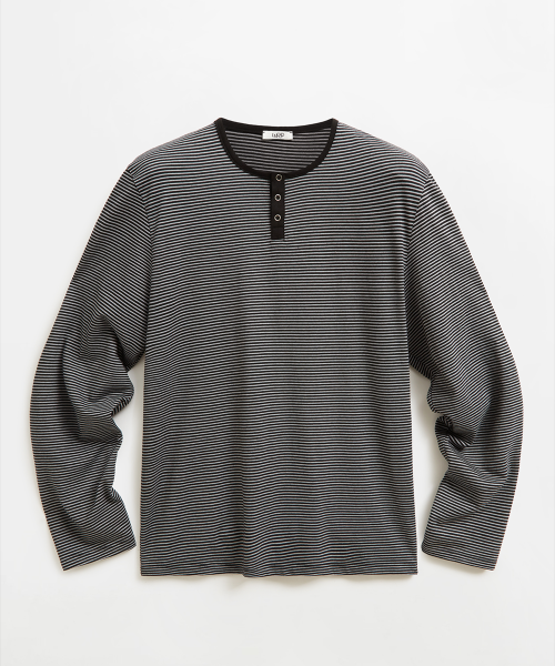 클로드 스트라이프 헨리넥 롱 슬리브 차콜 블랙