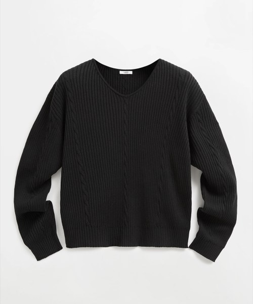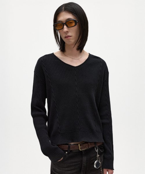 하츠 린넨코튼 브이넥 니트 멜란지 그레이