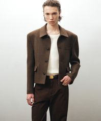 헤비 울 스트라이프 크롭 자켓 (브라운스트라이프)