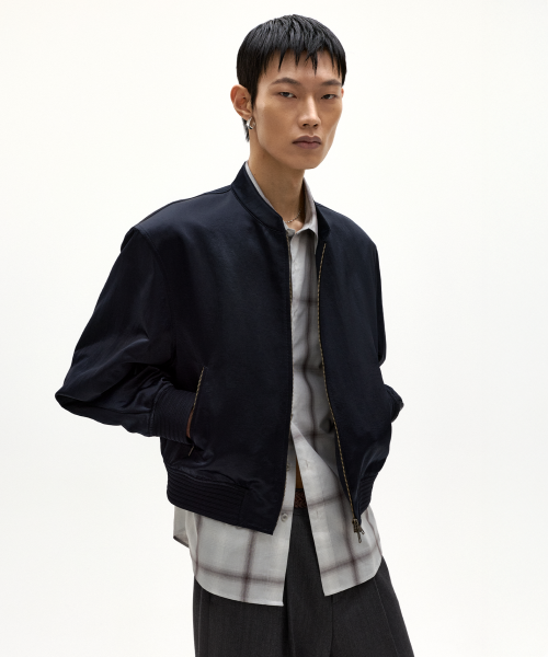 레이즈 새틴 나일론 블루종 자켓 다크 네이비
