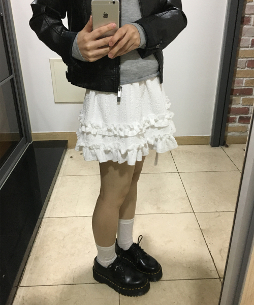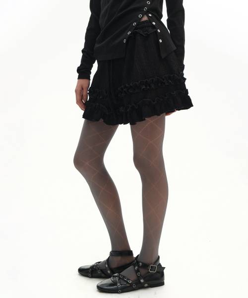 듀어 프릴 레이스 볼륨 플레어 레이어드 미니 캉캉 스커트_2COLOR