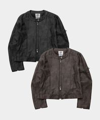 레이싱 넥 버튼 인시전 슬림 라인 바이커 레더 라이더 자켓_2COLOR
