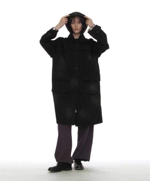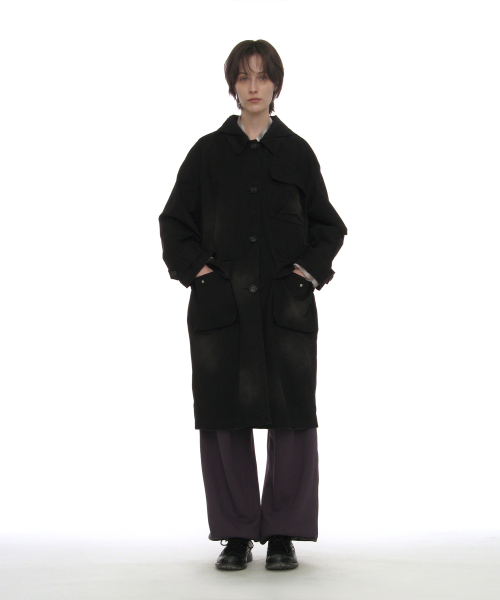투웨이 워시드 포켓 발마칸 코트_블랙