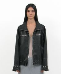 워시드 레더 봄버 자켓_블랙
