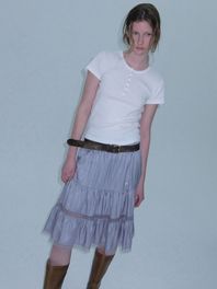 새틴 레이스 타이어드 스커트_스틸 그레이